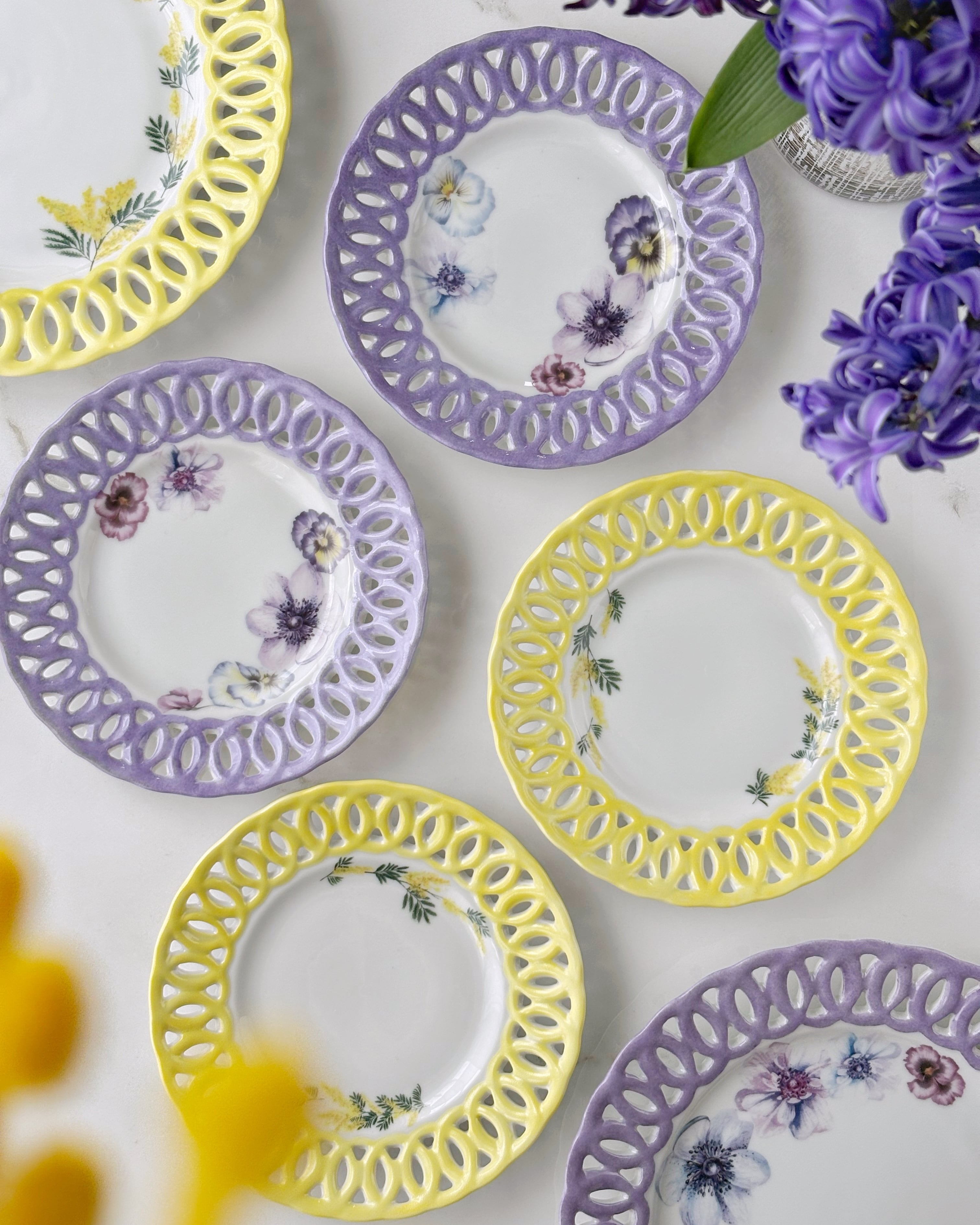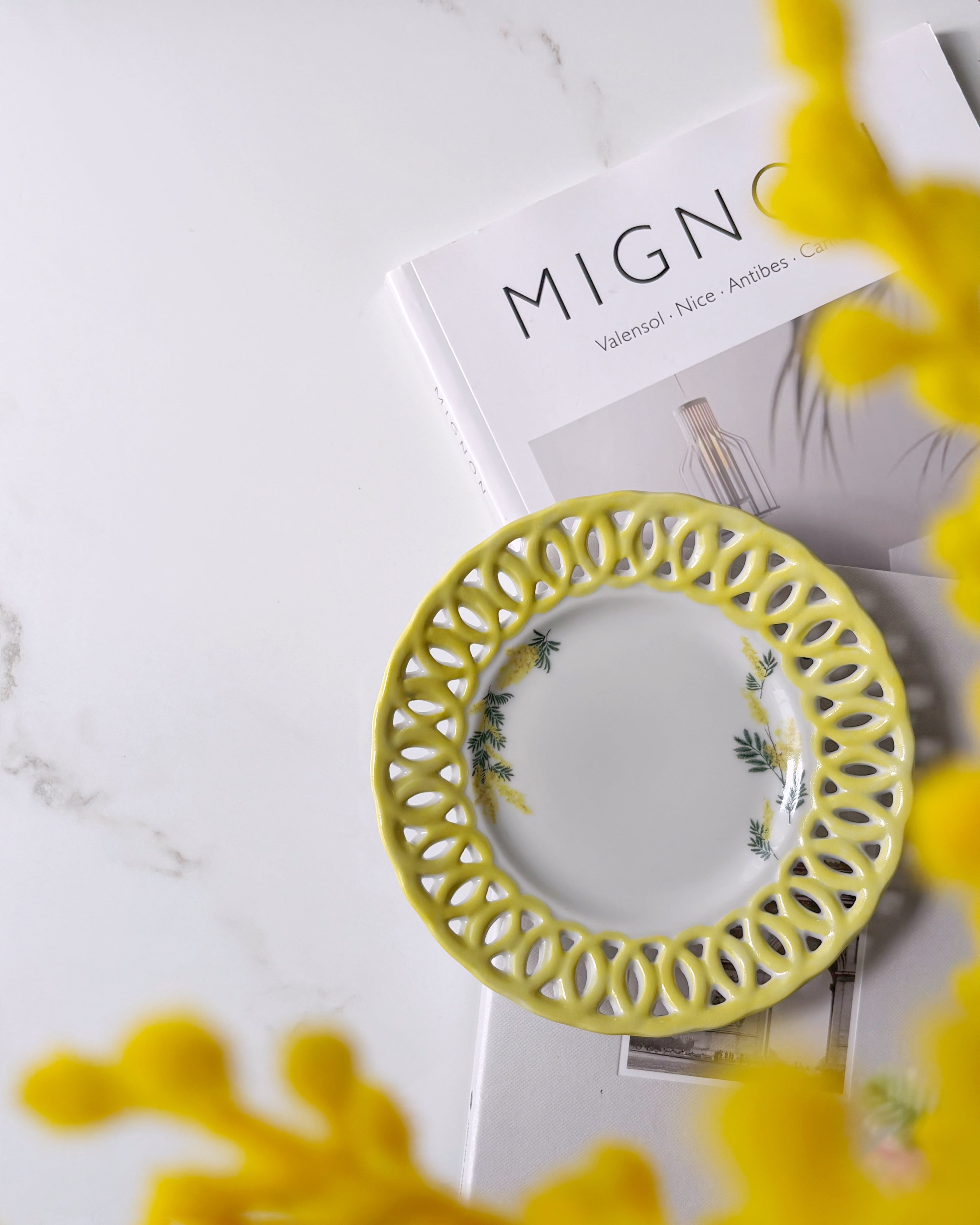 透かし彫りのフチは黄色で