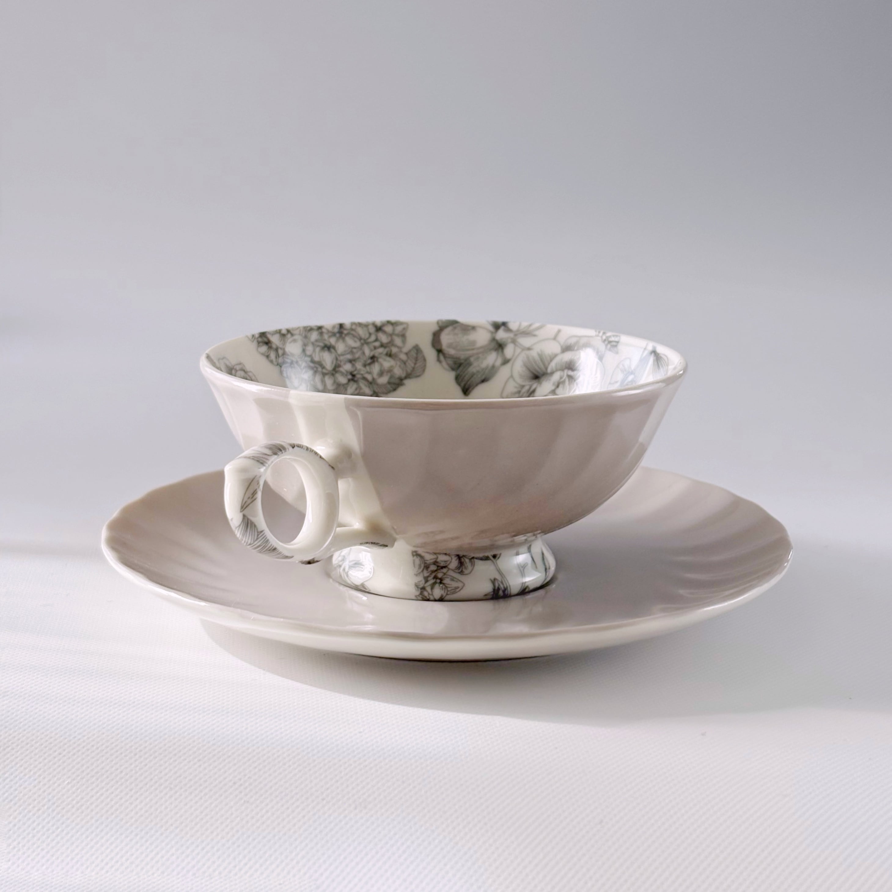 カップとソーサーを優しいグレーカラーでやさしく彩り