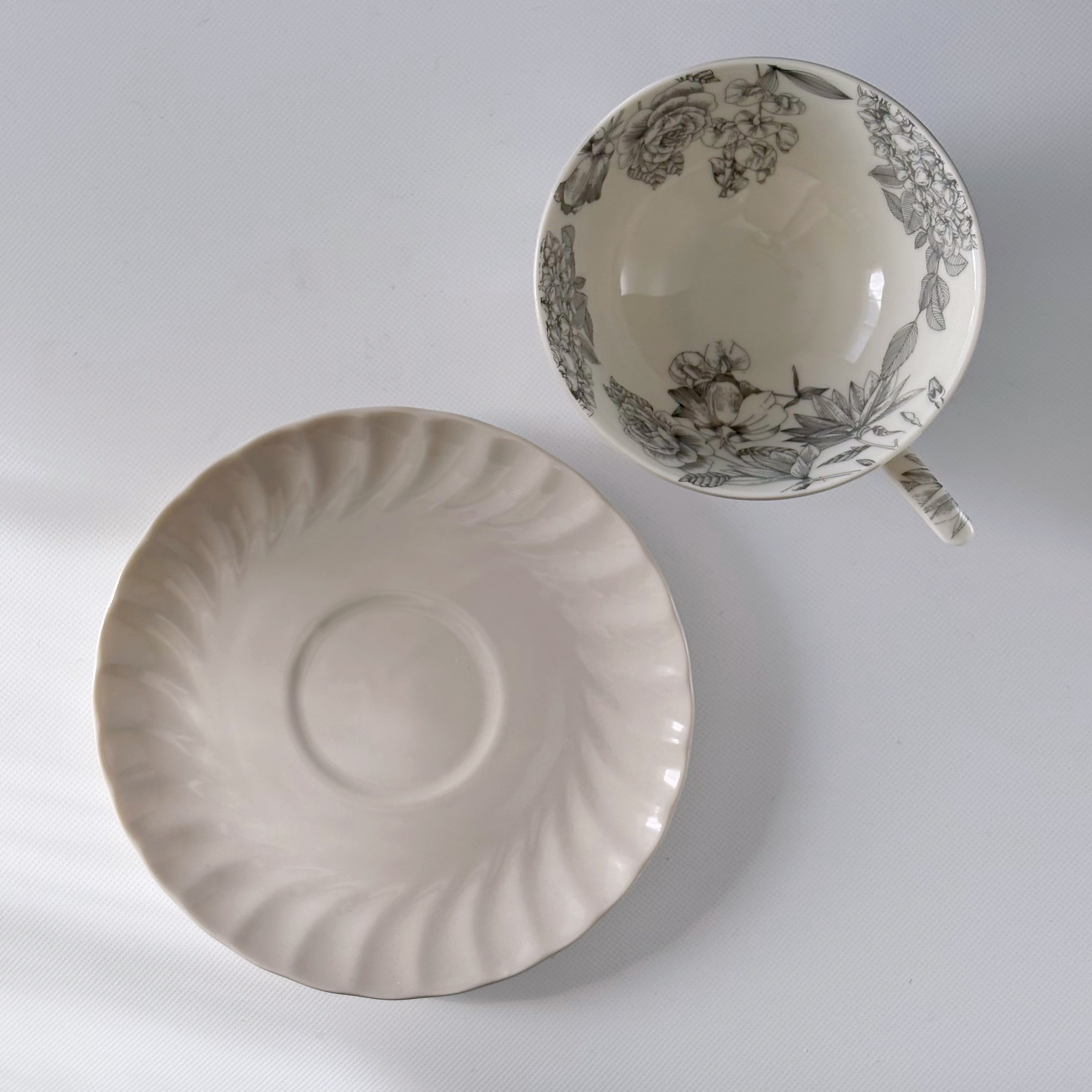 グレー×フラワーのティーカップ 誕生日プレゼントや新生活ギフトにも