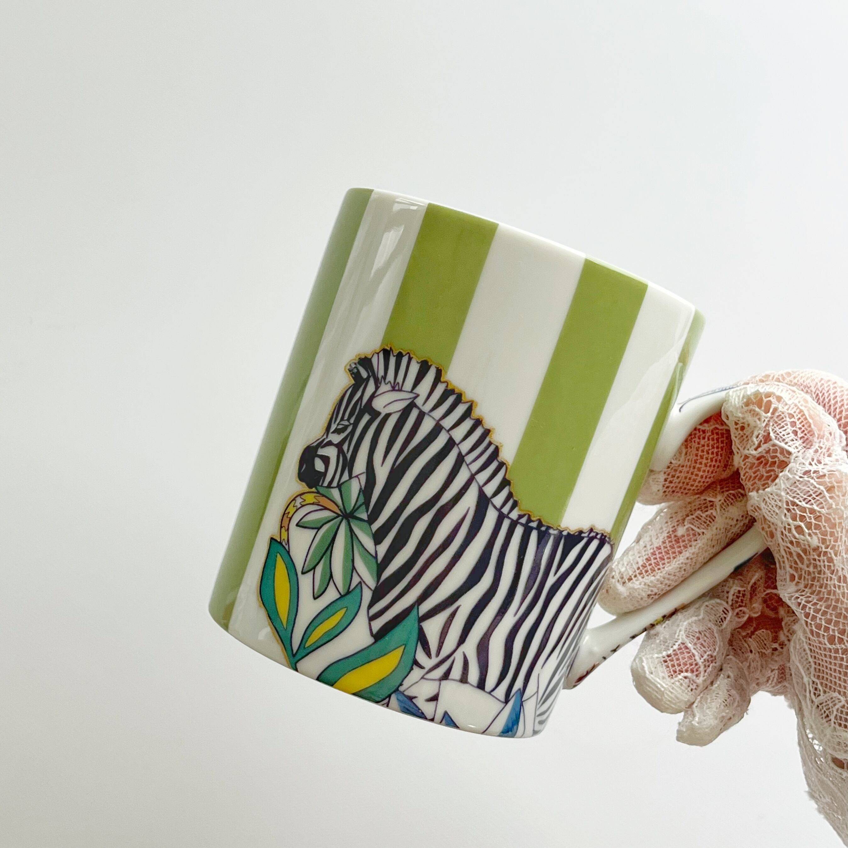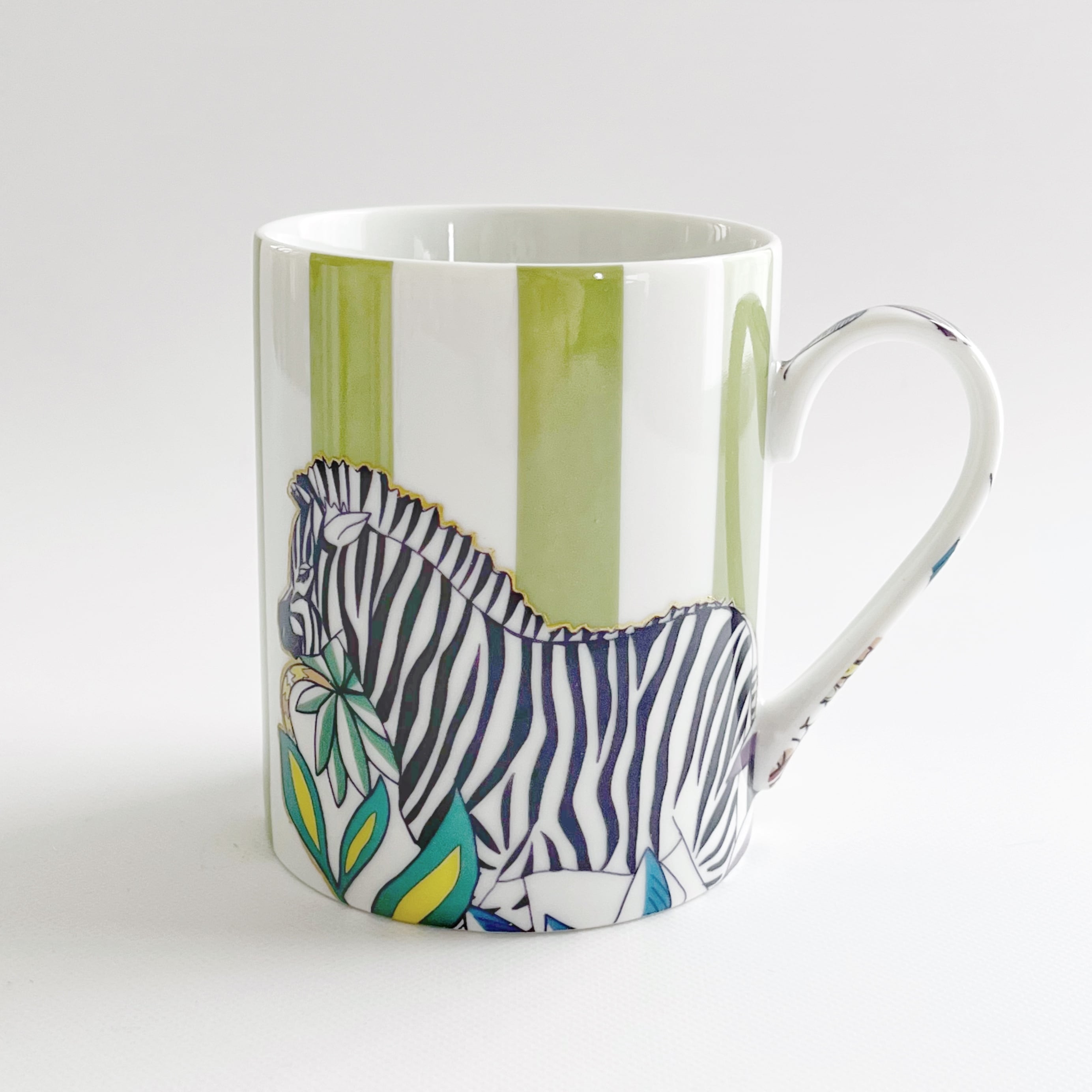 《名入れギフトにおススメ》しまうまのマグカップ(くすみグリーン)