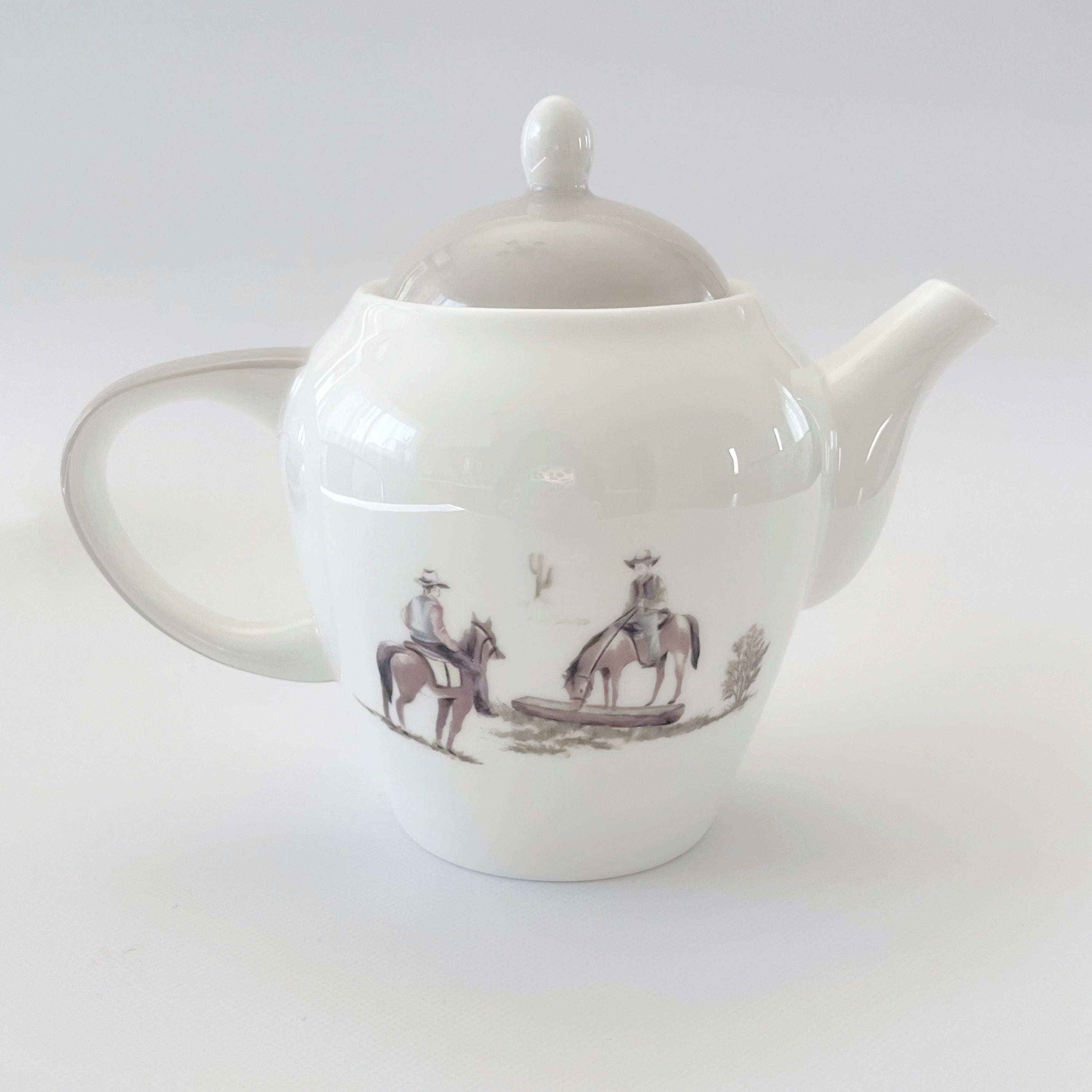 大人っぽく柔らかな水彩画の雰囲気の馬柄を散りばめたティーポットです。