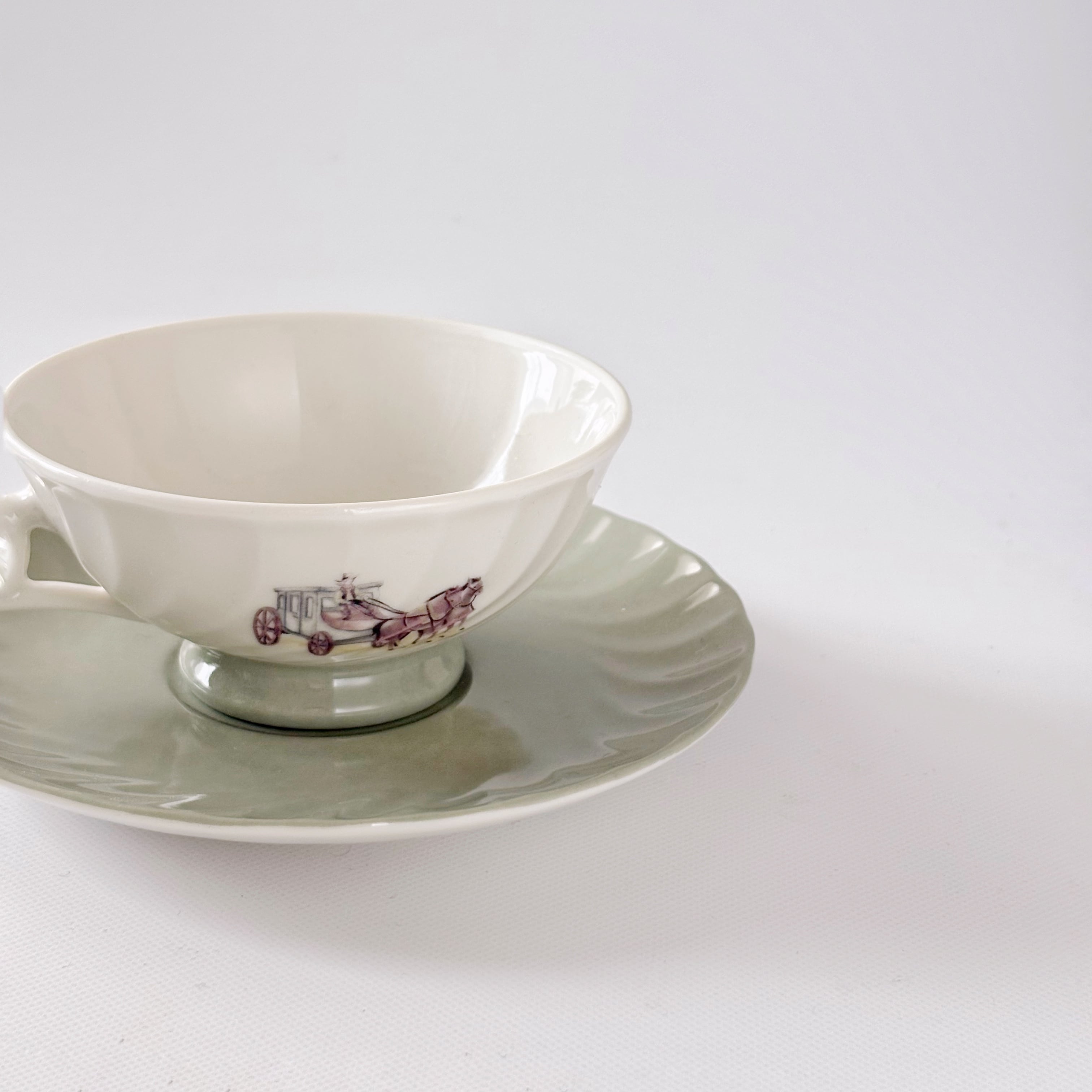 ソーサーや持ち手部分はくすんだグリーンで
